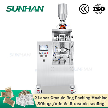 SUNHAN SH-FSFM2 Automatic Servo Vertical Quantitative 2 Lanes Granule Sachet Filling Ultrasonic Sealing Packing Machine