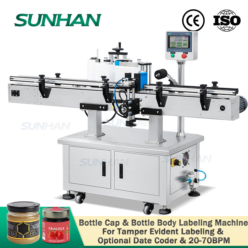 Designed for labeling stickers on bottle body & caps, this machine is suitable for round bottles and can add date coder to printing production date. It is widely used in jam or hot sauce packaging