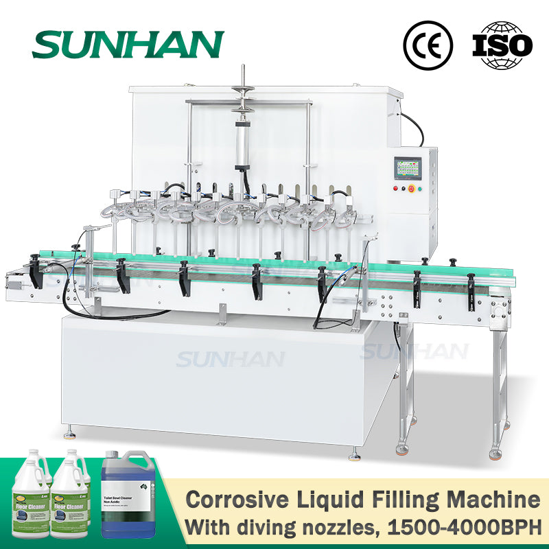 SUNHAN SH-YTCR12A Automatic 12 Heads Anti Corrosion Household Cleaning Floor Cleaner Hcl Acid Chemical Corrosive Liquid Filling Machine