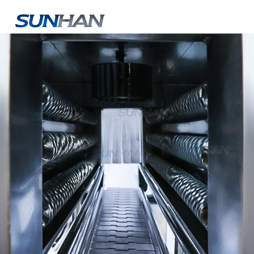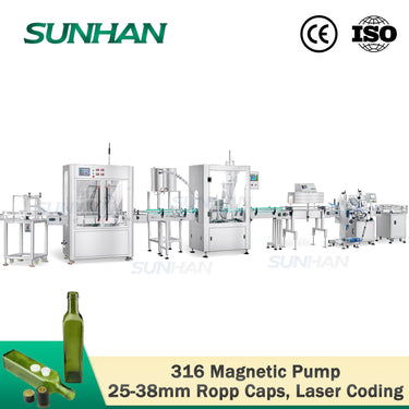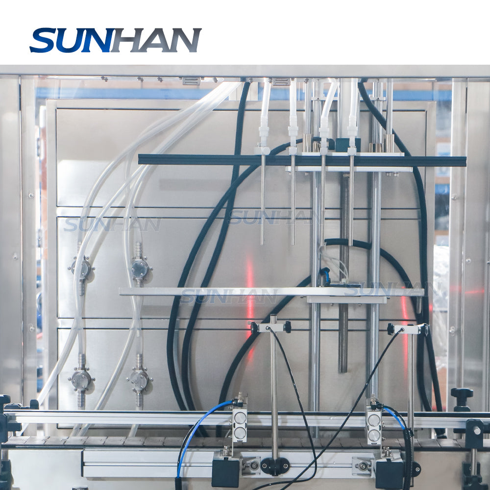 SUNHAN SH-FAL180G2 Full Automatic Edible Oil Spirit Drink Ropp Glass Square Bottle Shrink Filling Capping Labeling Production Line