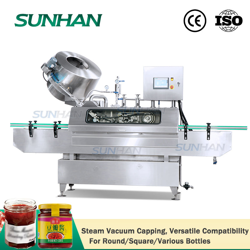Automatic Steam Type Linear Metal Twist-off Lug Caps Jar Bottle Vacuum Chili Sauce Capping Machine For Fruit Jam