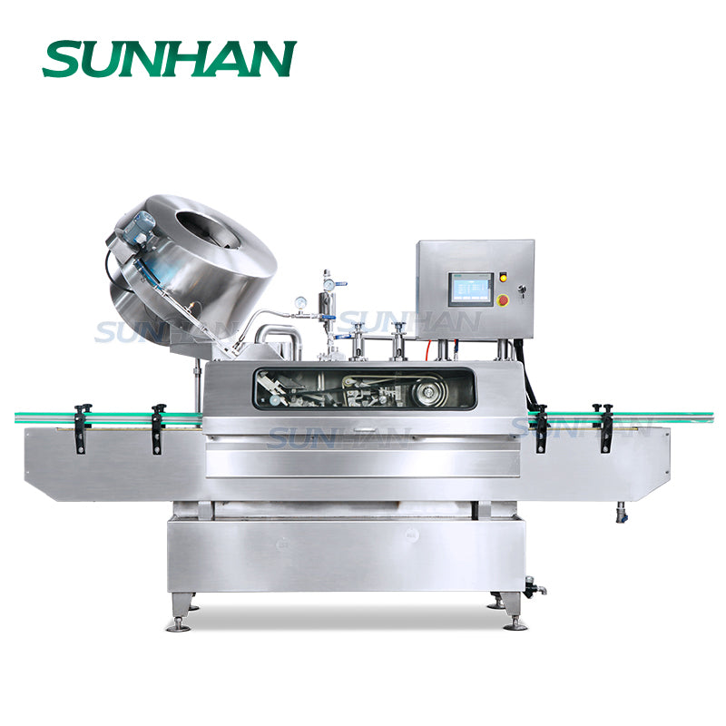 ▶Use high-speed steam to replace the normal pressure air in the top gap of the bottle mouth; after sealing, the cooling water pipe sprays cold water on the cap to cool the bottle, so that the required vacuum degree is achieved in the sealed bottle