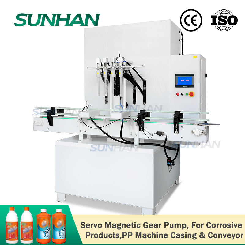 SUNHAN SH-GYCR4A Automatic Servo Magnetic Gear Pump Chemical Bleach Detergent Acids Corrosive Liquid Filling Machine