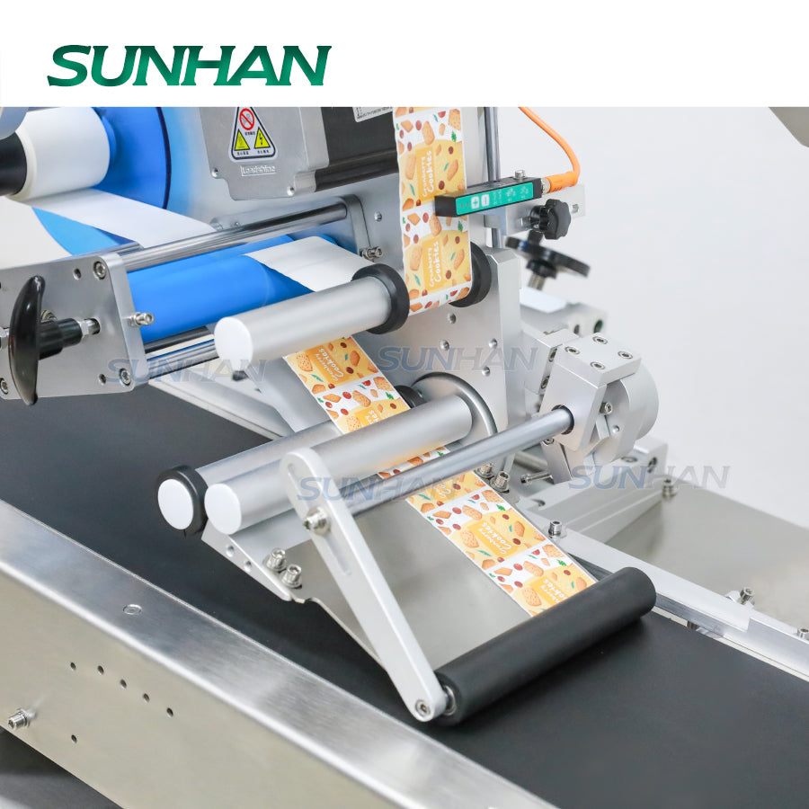 This label applicator designed for sticking labels on flat top side surface of plastic bags, stand up pouch, clothing hand tag, paper box etc. It can be selected whether to be equipped with a paging machine according to production needs. This pouch labeling machine has high working speed which can label 40-120 pieces/min, with this, you can improves your working efficiency greatly.