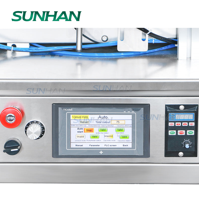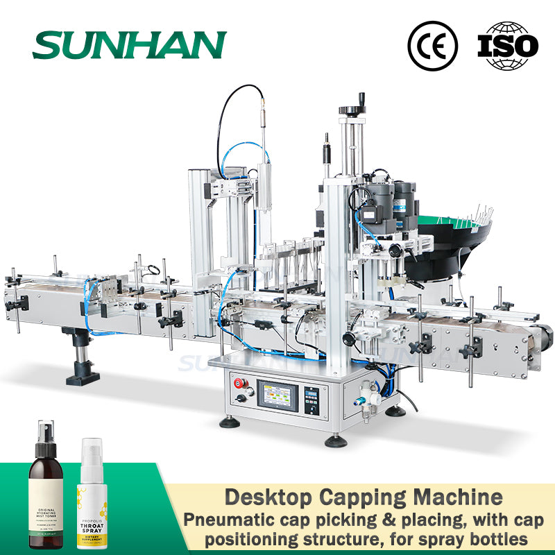 SUNHAN SH-XG1870S Automatic Desktop Hair Oil Cosmetic Body Spray Bottle Cap Capping Machine With Cap Feeder