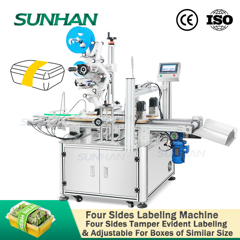 SUNHAN SH-TB831F Automatic Plastic Food Box Takeout Containers Industry Trays Four Sides Tamper Evident Labeling Machine