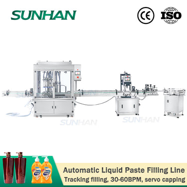 Упаковочная система обычно состоит из разливочной машины, укупорочной машины, этикетировочной машины и других сопутствующих машин, таких как машина для мойки бутылок и машина с поворотным столом для бутылок. Может быть предоставлено индивидуальное упаковочное решение для пищевых продуктов, напитков, косметики и бытовой химии.